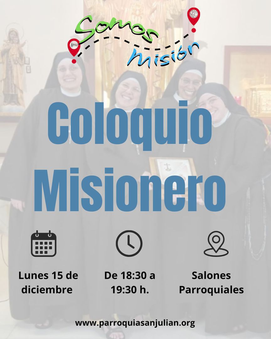 Mañana lunes 15 de diciembre a las 18:30 en el Salón Parroquial tendremos un Coloquio Misionero con las Carmelitas Samaritanas del Corazón de Jesús que están de